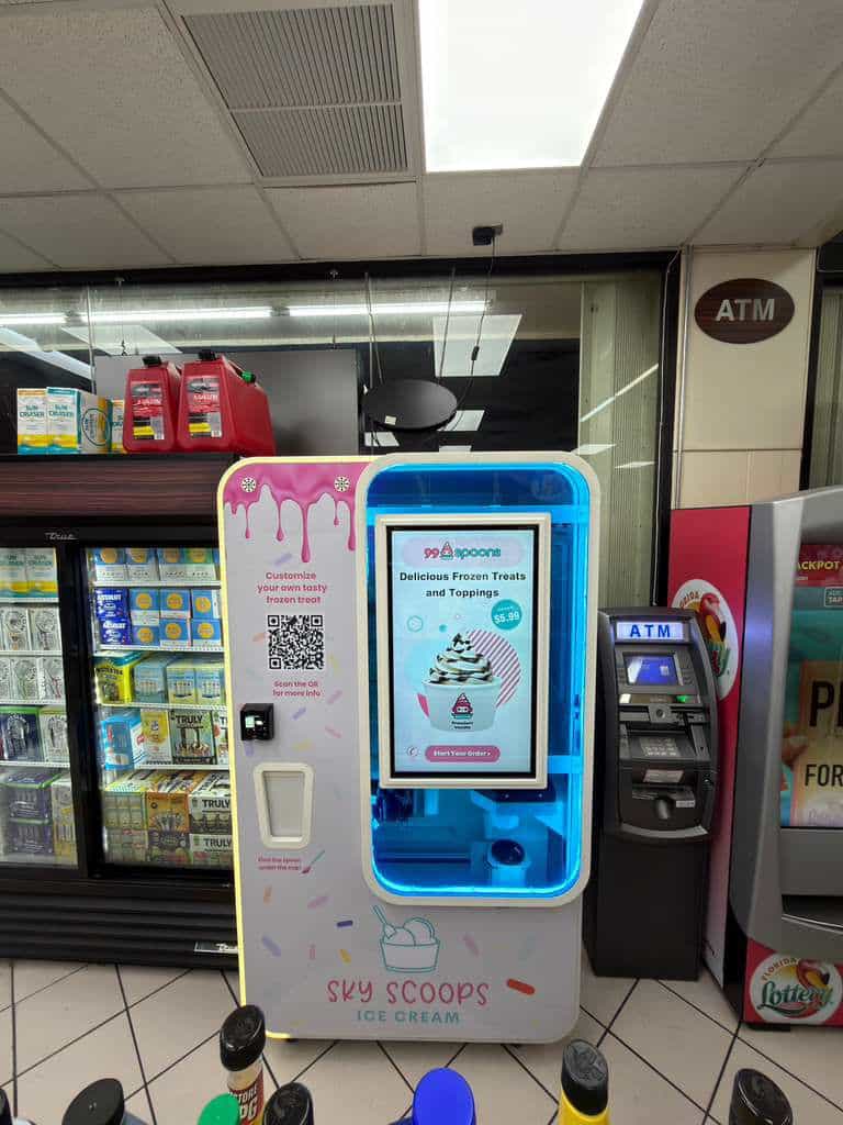 Bryan has officially secured and launched Sky Scoops, a fully self-branded 99 Spoons kiosk, at a high-performing 24/7 Marathon gas station in North Lauderdale, Florida—marking a major milestone for the platform.